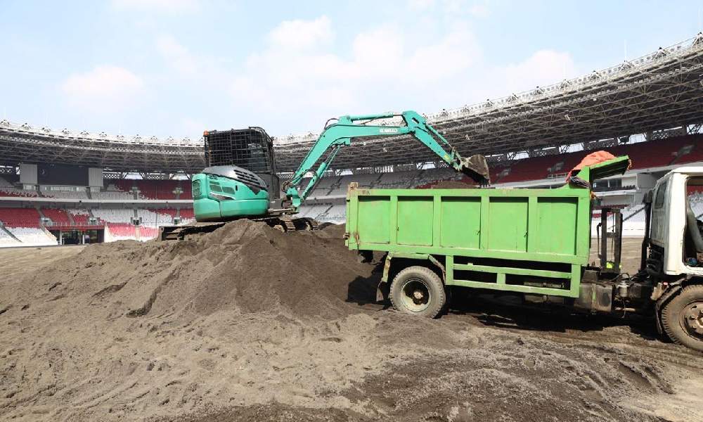 Pekerjaan revitalisasi lapangan sepak bola di Stadion Utama GBK merupakan bagian dari rencana induk tahun 2024/2025 untuk menuju GBK yang berstandar internasional.
